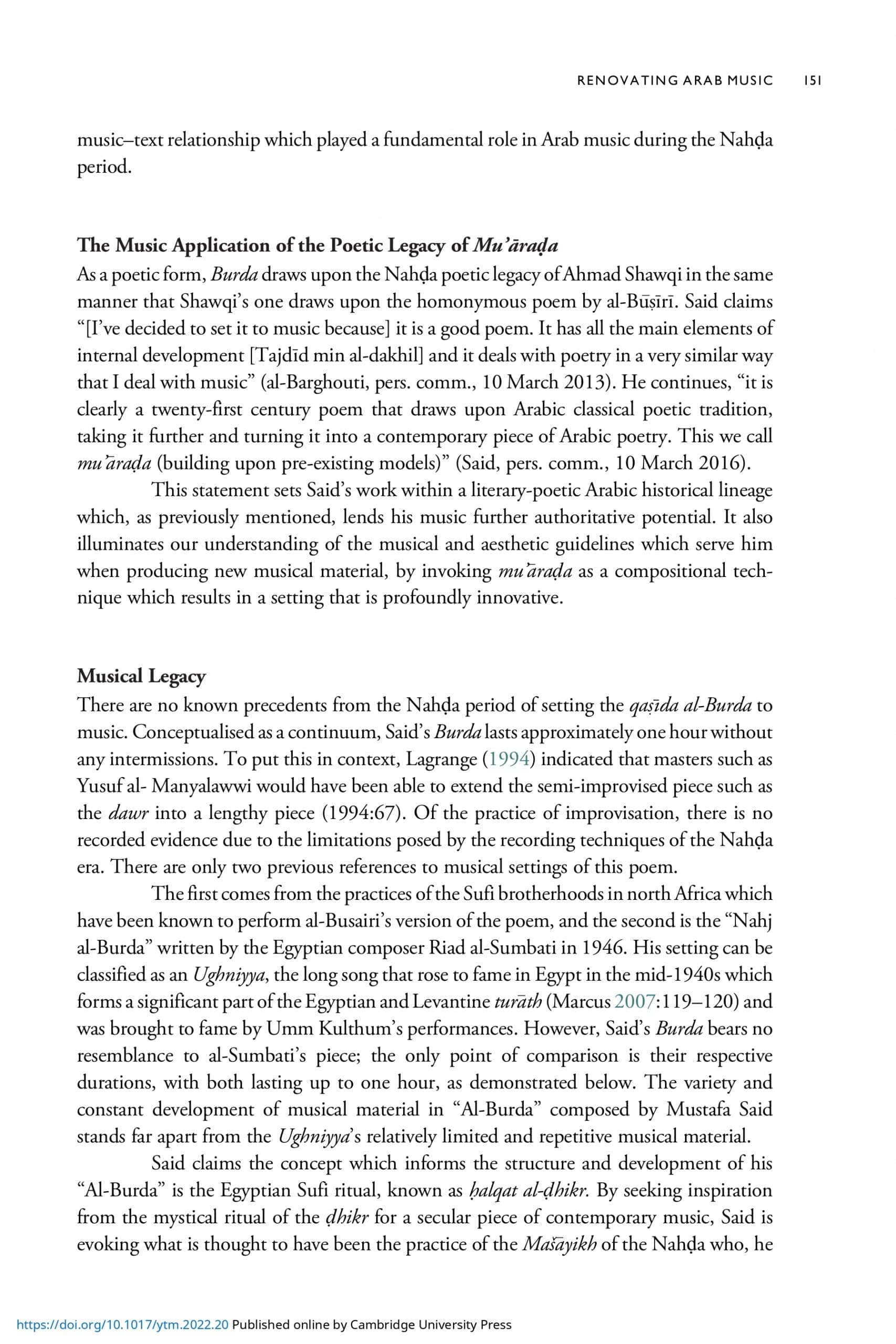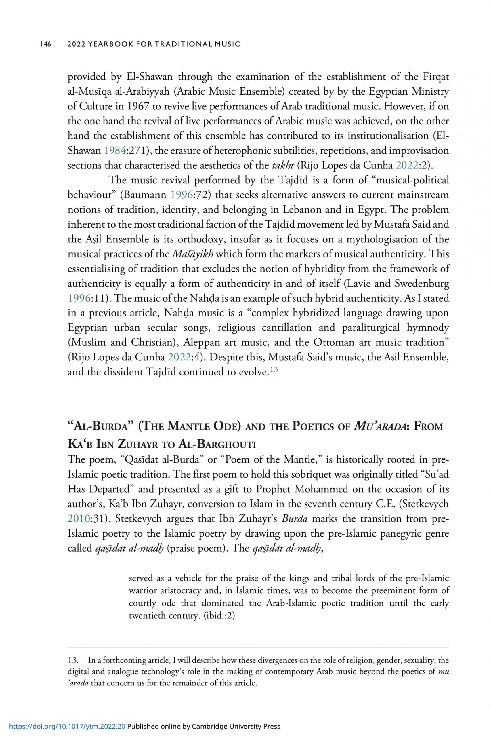 The Burda: Reweaving the Mantle, Renovating Arab Music Tradition between Egypt and the Arab Levant | Yearbook for Traditional Music | Cambridge Core